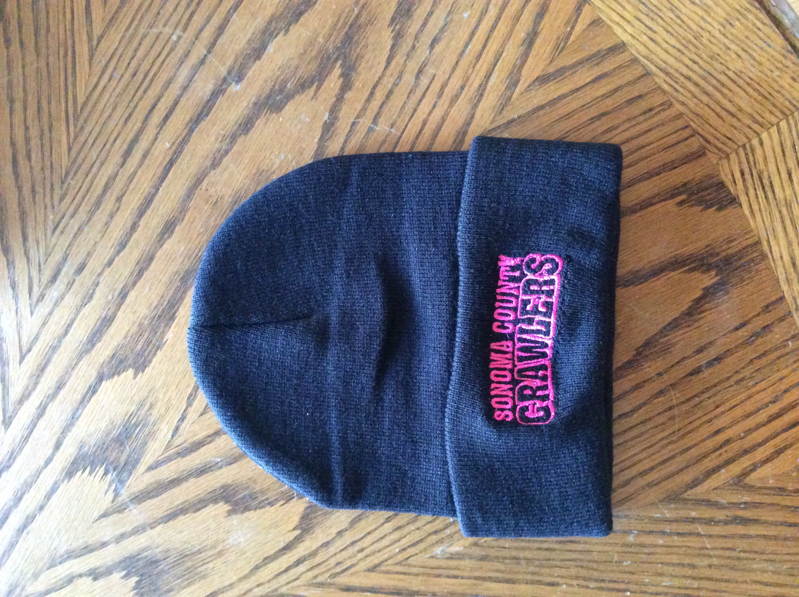 Regular black beanie pink writing